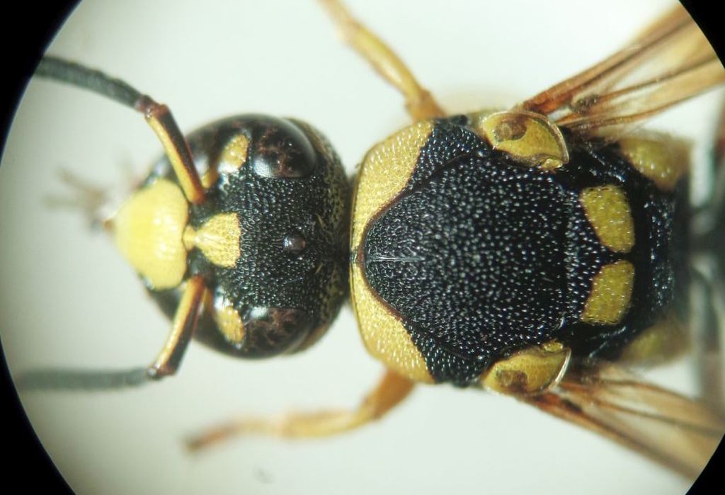 Nella seconda foto si vede bene la forte punteggiatura della parte posteriore delle tegule, tipica di dantici ed hellenicus. Visto che da noi l'hellenicus non c'è, non posso che confermare Euodynerus dantici ;)