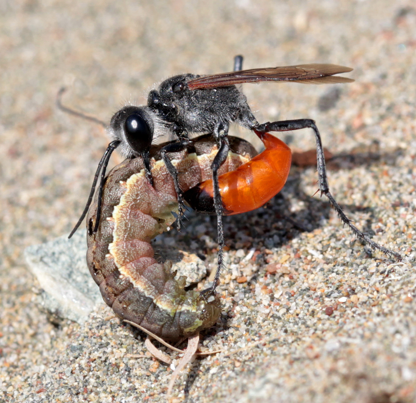 Questa invece è una (o sono due?) femmina di Podalonia (se confronti il peziolo con quello dell'Ammophila dell'altro post, la differenza macroscopica la vedi subito...). A Cipro c'è sicuramente più di una specie. Da una foto non è possibile dare un'identificazione sicura, però azzarderei Podalonia cfr. tydei.