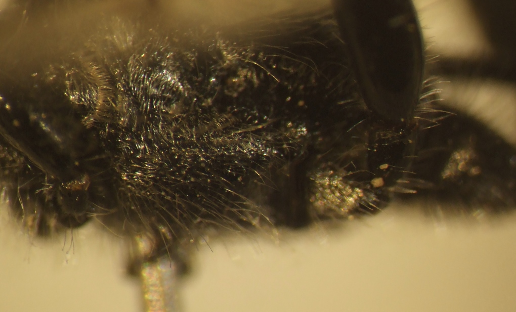 ho rifatto le foto con più attenzione ;) , mi sembra di vedere la metapleura striata - per quanto riguardo lo "scutello" (= parte superiore del torace?) sembra uniforme, quindi ...... :no1: