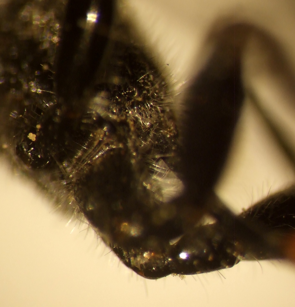 Non riesco a vedere: la metapleura è la parte laterale del torace cui si attacca la metacoxa (zampa posteriore). In alternativa guarda se lo scutello è + o - piano senza impronta mediana (lividocinctus) o se ha i bordi un po' rialzati con una impronta (solco) mediana (kirbii). Le due specie sono molto simili in foto.