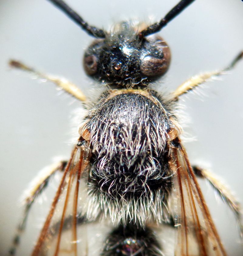 Salve, posto questo maschio (mm 12) perchè il primo che è mancante delle tipiche strette fasce gialle all'apice dei tergiti, che sono infatti del tutto neri; per il resto tutto ok; non ho femmine. Altri hanno esemplari simili? Grazie.