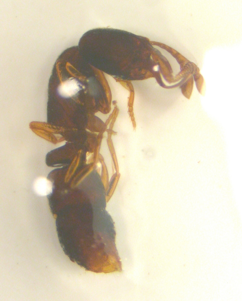 Una Ponera raccolta in pochi esemplari, sotto un grosso sasso in una zona rimboschita a conifere. Misura 4 mm