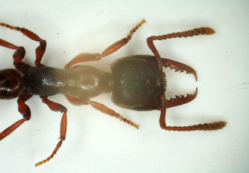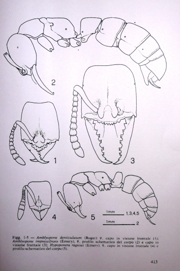 Bellissima...! Io però direi che è l'Amblyopone impressifrons, che è ancora più "rara" dell'altra... confrontando con il (mio) disegno, guardate la forma delle lamine frontali, la spina all'apice delle guance, la dentatura del clipeo e delle mandibole e anche le dimensioni maggiori (denticulatum è più piccolo). Sono formiche di cui non si sa praticamente nulla...