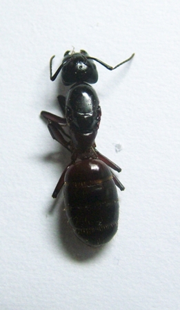 E' una regina di Camponotus ligniperda. E' il Formicidae in assoluto più grande che si possa reperire in Europa. La regina del Camponotus herculeanus è molto simile, ma ha solo i femori rossicci e talvolta l'episterno. Col primo tergite screziato di rosso è ligniperda. :hi: