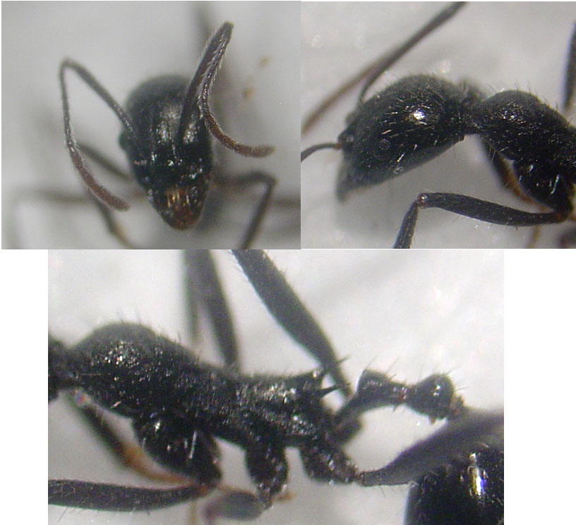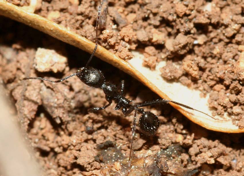 Taglia 6 mm., colonia monomorfa, corpo e zampe snelle, petiolo a due articoli, una coppia di lunghe spine sul propodeo, 12 articoli alle antenne, inserzione delle antenne molto bassa.