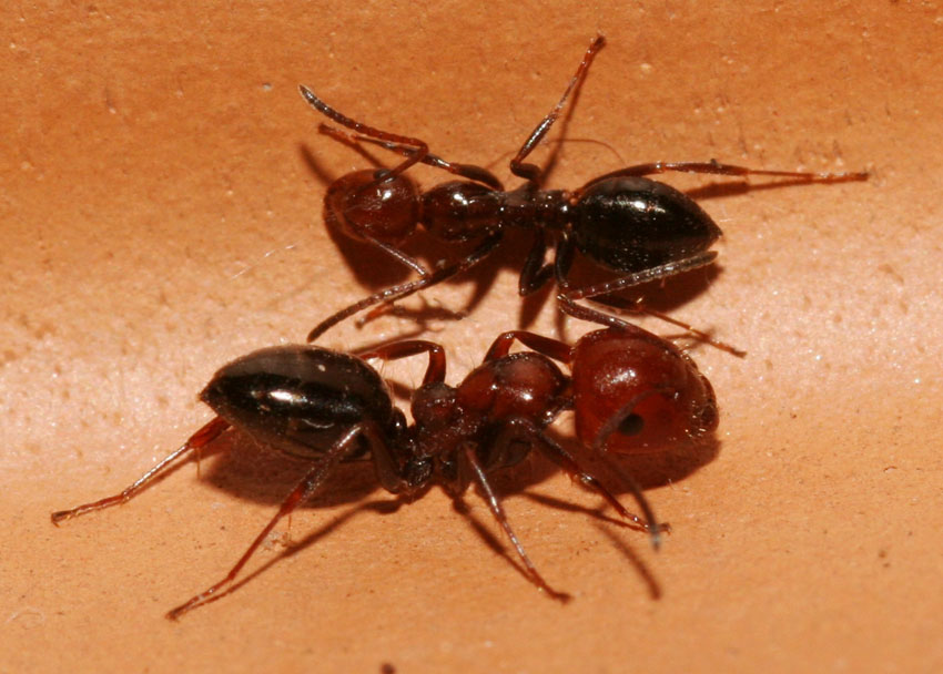 Io avevo osservato l'interazione con le Crematogaster scutellaris nella nostra casa in Sardegna che ospita un enorme nido nelle intercapedini dei muri perimetrali. Anzi, sarebbe più corretto dire che noi siamo ospitati nel loro nido, che avvolge tutta la casa, con uscite da ogni lato.