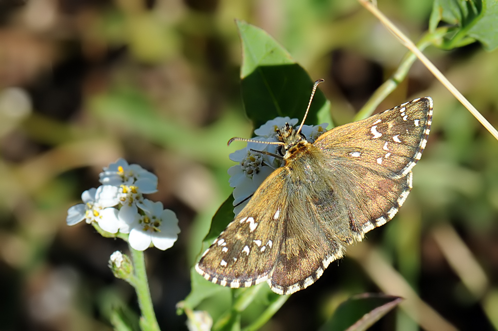 Come dicevo qui, dove Silvio ci mostra lo stesso esemplare (o almeno la stessa specie) dall'alto, sono convinto anch'io si tratti di Pyrgus serratulae (Rambur, 1839).
