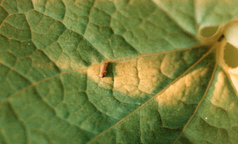 In effetti, appena usciti dall’uovo i bruchi sono chiari, solo il capo tende ad essere più scuro (come si può vedere, non molto bene da questa prima foto che compie oggi esattamente 30 anni avendola scattata il 28 aprile del 1987!). Il bruco in questione era lungo 1,5 mm.