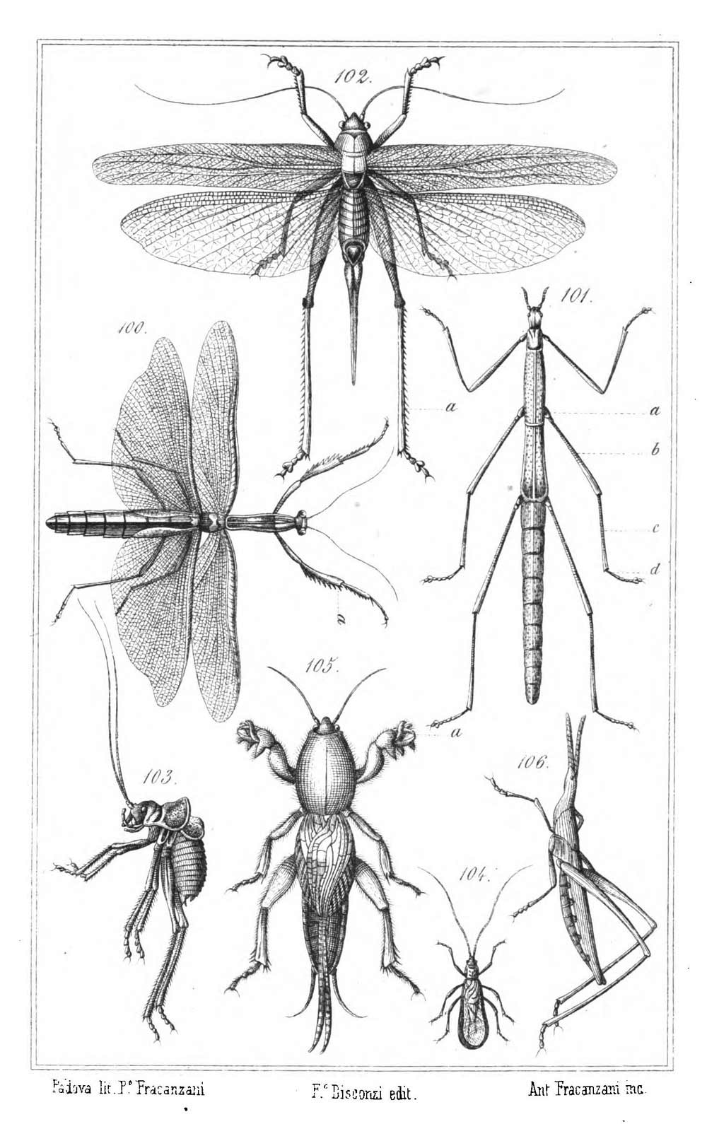 Ecco intanto la tavola VIII di di "Entomologia Vicentina", dove sono rappresentati, fra l'altro, alcuni Neurotteri e Imenotteri