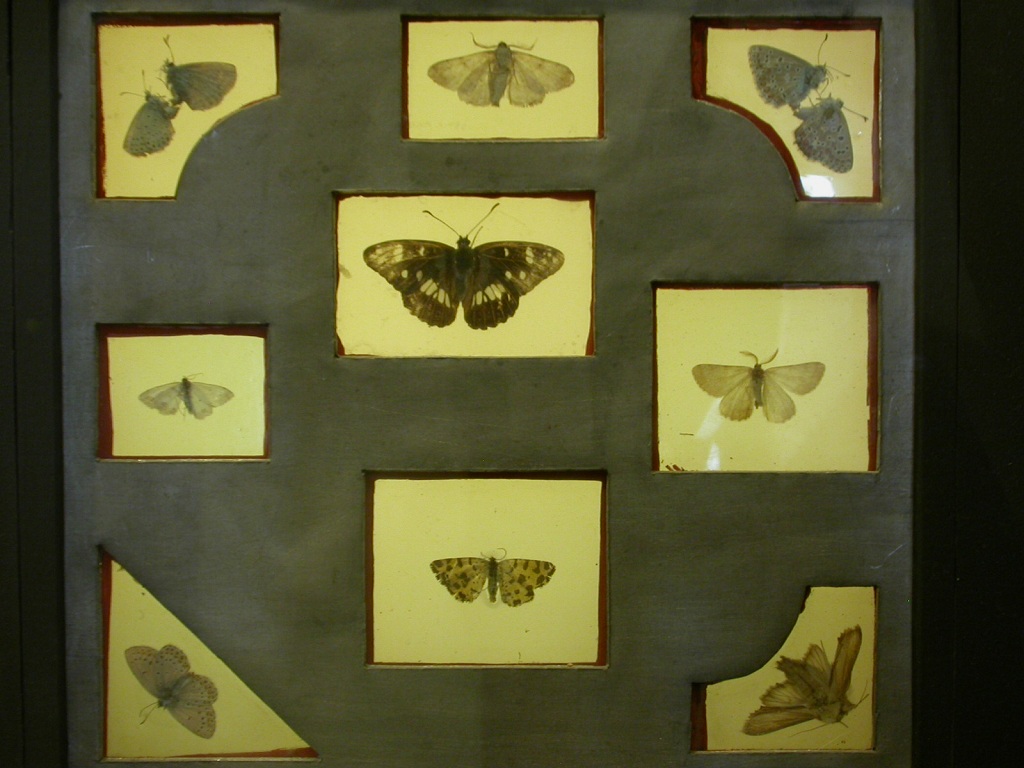 Il Museo di Storia naturale di questa città possiede vari esemplari facenti parte di tale collezione: ne ho fotografato alcuni per mostrarvi la particolare tecnica di conservazione. Gli insetti, in questo caso lepidotteri, venivano rinchiusi a 'sandwich' tra due lastrine di vetro che venivano poi sigillate con ceralacca. Queste particolari e piccole teche di vetro contenenti uno o più esemplari erano poi probabilmente montate in modo da formare un mosaico o una vetrata. L'abate poteva così stupire i suoi ospiti con questa meravigliosa raccolta.