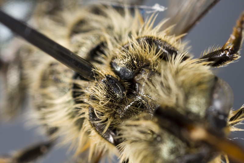 Panurgus canescens Latreille 1811 specie più piccola sotto i 7 mm. Con la cuticola brillante e assai poco puntata.