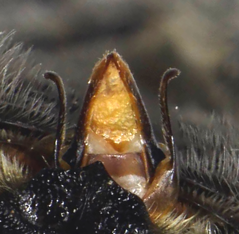 Maschio, immediatamente riconoscibile per il settimo tergite fortemente sporgente da sotto il sesto e con una marcata carena mediana, 13mm