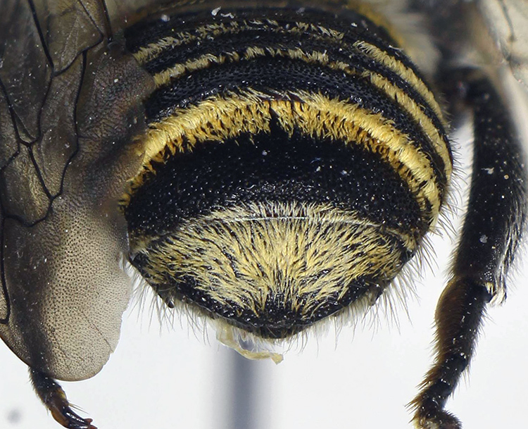 Oltre alla femmina, ecco anche il maschio di Megachile pilicrus, riconoscibile oltre che per i genitali per la densa pubescenza sul sesto tergite e la presenza di ampie fasce di peli anche sugli sterniti.