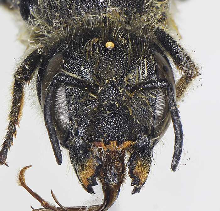 Esemplare rovinato, ma รจ l'unico che ho di questa specie. Il margine anteriore del clipeo con due dentini e il terzo dente della mandibola rettangolare ne permettono un'identificazione sicura. 11,5mm |