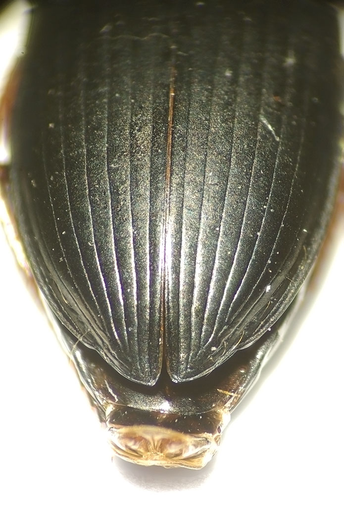 ciao nicola per quanto riguarda il poro agli angoli post. del pronoto, mi hanno fatto notare  che la setola che si vede a sx ne indica esattamente la posizione  ... ma anche se l'identificazione dovrebbe essere ormai sicura (anche perché se no non vedo proprio cosa potrebbe essere), appena hai un attimo, una foto leggermente da dietro del terzo apicale delle elitre me la fai  ? voglio vedere se le interstrie che appaiono del tutto piane fino all'apice sono un effetto ottico della foto/illuminazione, o che c...osa  ...