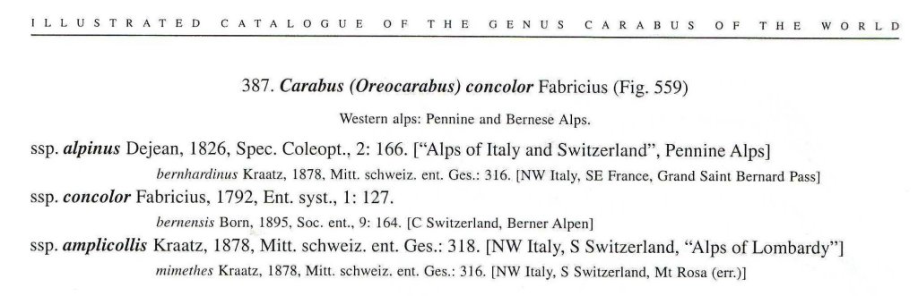 Colgo l'occasione per inserire una mia immagine determinata come Carabus (Orinocarabus) concolor Fabricius 1792 raccolto in Italia (Alpe di Mera 1800m/slm Valsesia (VC) 15.VIII.1992), in modo tale da poterle confrontare!