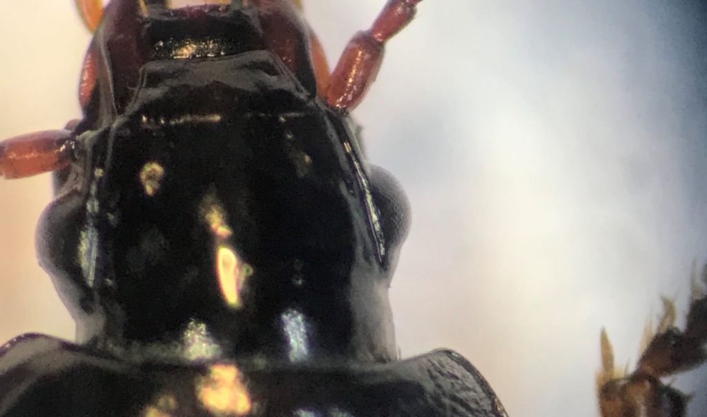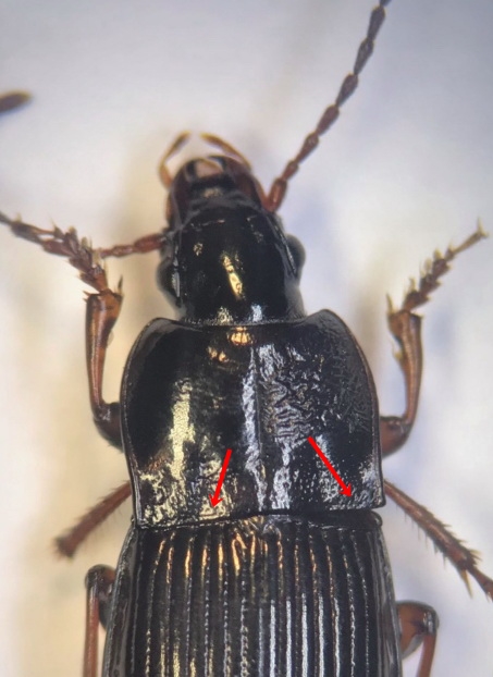 Buongiorno, chiedo di nuovo aiuto a chi è disponibile. Con le chiavi di Pesarini sono arrivata fino Pterostichinae (due pori sopraorbitali, elitre glabre, antenne pubescenti al più dalla metà apicale del terzo, articolo dei palpi con due setole) Ha le unghie lisce, elitre con almeno un poro setigero nella 3° interstria....fin qui è giusto? mi sono arenata sul concetto di tibie nettamente o mediocramente allargate. io direi nettamente e poi comunque non mi pare abbia un poro nell'angolo posteriore del pronoto, ma non mi sembra un Tapinopterus qualcuno ha voglia di spiegarmi? dimensioni 0,7 luogo di ritrovamento Dolomiti Bellunesi, Vette Feltrine 2000m Grazie mille