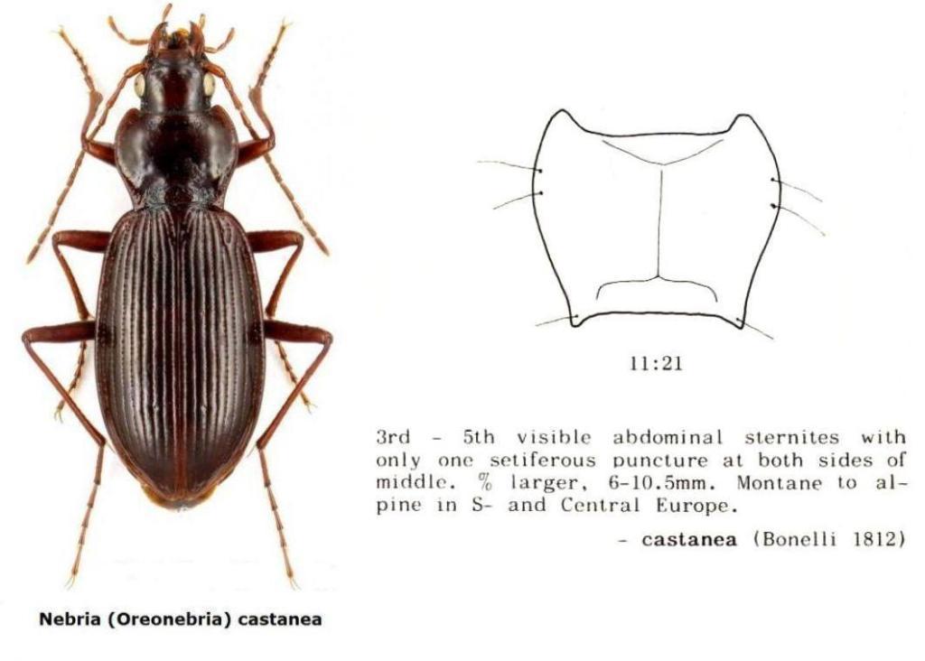 Nebria (Alpaeonebria) germari simonyi Ganglbauer, 1891 e Oreonebria (Oreonebria) castanea (Bonelli, 1810) (cf.) - Carabidae
