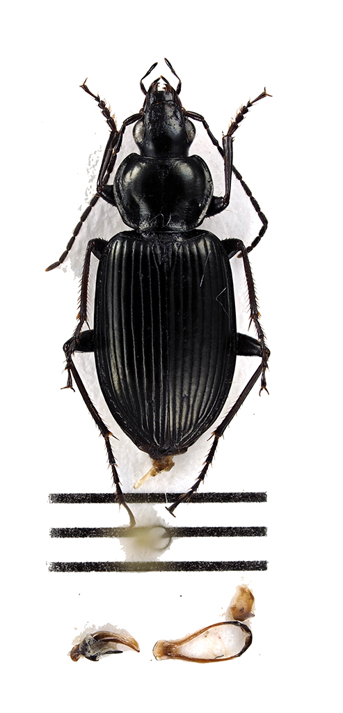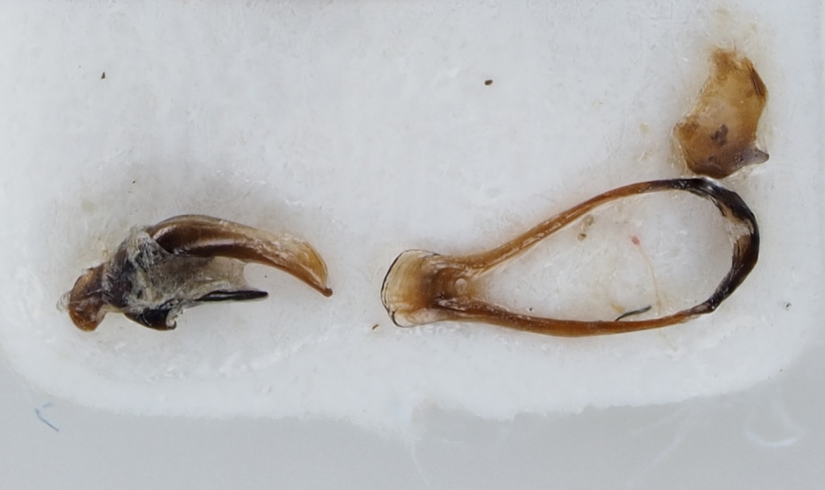 Non torna l'edeago (troppo sottile) e l'anello genitale (con l'estremità dilatata). Bisognerebbe separare il lobo mediano dell'edeago dai parameri ma a giudicare dall'anello genitale sembra corrispondere bene ad Agonum (Olisares) duftschmidi Schmidt, 1994.