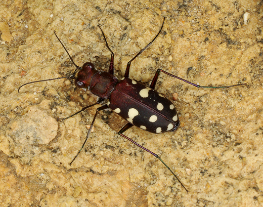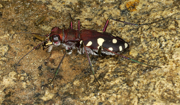 E questa è quella che, almeno nei giorni in cui ero presente, sembrava fosse la sua preda preferita, un crostaceo anfipode che abbondava sul bagnasciuga. Ho assistito a numerosi attacchi, anche se non sono mai riuscito a fotografarli in atto. Gli anfipodi, che necessitano di forte umidità, non si allontanavano mai dall’acqua, ma questo non scoraggiava le cicindelle che non avevano paura di bagnarsi le zampe.