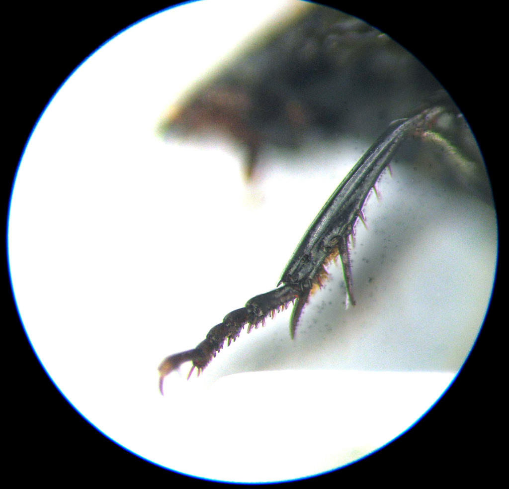con colpevole ritardo :oops: mostro in visione laterale il protarso sinistro (spero non servisse il meso o il meta! :? ) del probabile Abax (Abax) continuus.