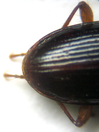 Sabato scorso, alle 14, ricevo una telefonata: "sono Mauro (magosti), hai voglia/tempo per un'uscita a Gaine?" Medito. Conosco la zona solo di fama perchè non ci sono mai stato, rimandando e rimandando una "scorribanda" a ... futuri ritagli di tempo: tanto è dietro casa! Intanto non ci sono mai stato Grazie a Mauro sono ... ehm ... "costretto" ad andarci "Va bene - rispondo -... a che ora e dove ci incontriamo?" "... Tra un'ora nel piazzale vicino a casa mia?" risponde. Alle 14,40 parto da casa, alle 14,50 sono nel piazzale di fronte, alle 14,55 arriva Mauro. Piove: ci andiamo lo stesso? Mentre con poca convinzione ne ... ehm ... discutiamo in macchina , una ventina di minuti dopo siamo a Gaine, una graziosa frazioncina di Monticelli Brusati, in provincia di Brescia.Il meteo non promette niente di buono, ma lasciamo lo stesso la macchina e temerariamente ci incamminiamo sul bel sentiero che porta lungo il greto del fiumiciattolo, prudentemente armati di ombrello ... "meteorologico". Dopo cinque minuti (o poco più), stiamo già al greto. Mauro c'era già stato, quindi si mette subito a frugare sotto i sassi; io mi godo un attimo il posto. Pioviggina, pertanto non mi fido a tirar fuori la macchina. Qualche foto a Mauro, però, la DEVO fare!: guarda un po' quanto ... ravana!!! E aspira! Ci provo anch'io: tanto, in giro, di Ectobini neanche l'ombra ![]() Ecco mauro impegnatissimo! Scovo un Cychrus italicus concentratissimo a papparsi una chiocciolina; lo prendo tra le dita e nemmeno la molla. Meglio lasciarlo in pace -penso- e lo libero. Niente foto: pioviggina (tanto verrebbero uno schifo lo stesso! )Incontriamo diversi Carabus catenulatus (almeno credo che lo siano ... : poi vedrò di postare una fotografia per conferma) e Cychrus italicus.... E Ocydromus: io ho raccolto il decorus ed il tibialis (estratti 6 maschi). Inoltre, questo carabidino (femmina, direi), di 5,5 mm: |