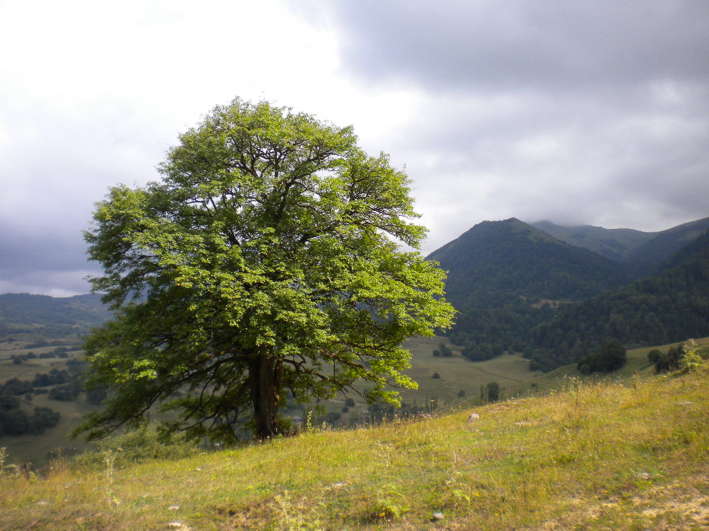 Altro panorama sempre attorno a Dimitarbi, appena fuori dal paesotto con enorme faggio in primo piano. Le altre laltifoglie che si notano nello sfondo sono meli, e peri, molto frequenti nelle vicinanze di abitazioni. Però sono completamente selvatici, con frutti attorno ai 2cm.