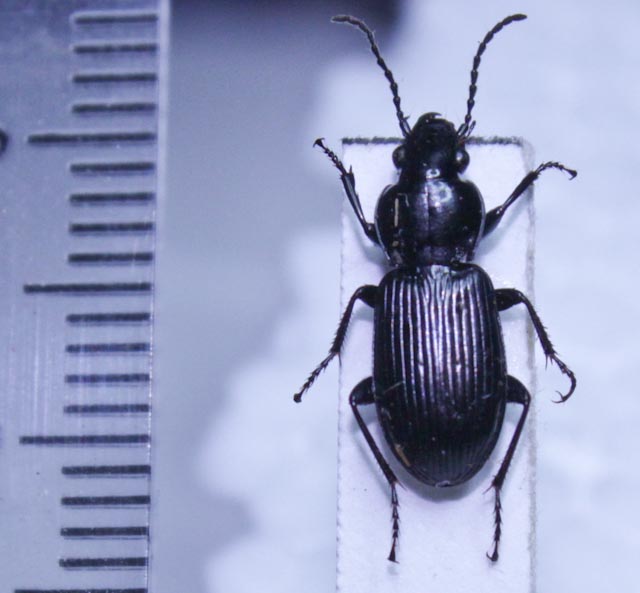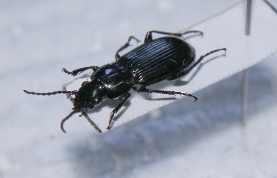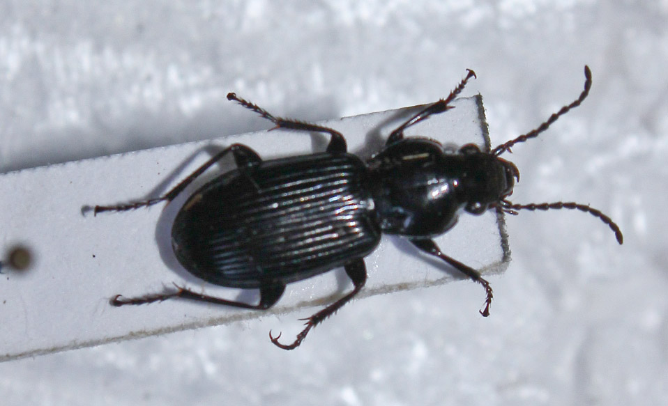 Io comunque avevo ipotizzato (con dubbio) P. (Melanius) aterrimus proprio perché ho creduto di vedere gli angoli posteriori del pronoto arrotondati (ho ancora qualche dubbio in proposito). Ovviamente mi sbaglierò, ma come P. (Platysma) niger e come P. (Morphnosoma) melanarius non mi convincono le dimensioni (mi sembra che 11-12 mm siano decisamente troppo pochi per queste specie) e la forma generale molto snella dell'esemplare fotografato. Sempre che gli angoli posteriori del pronoto siano realmente vivi, ci vedrei meglio, per esempio, un P. (Pseudomaseus) gracilis o un P. (Melanius) elongatus. Una foto migliore sarebbe di grande aiuto.