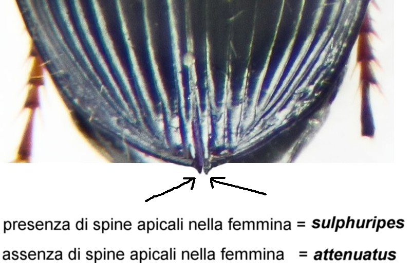 a parte dettagli apprezzabili solo attraverso il confronto (sulphuripes un po' più stretto e convesso, attenuatus leggermente più largo e depresso), il carattere più valido per entrambi i sessi è quello su cui avevo basato il primo tentativo di diagnosi