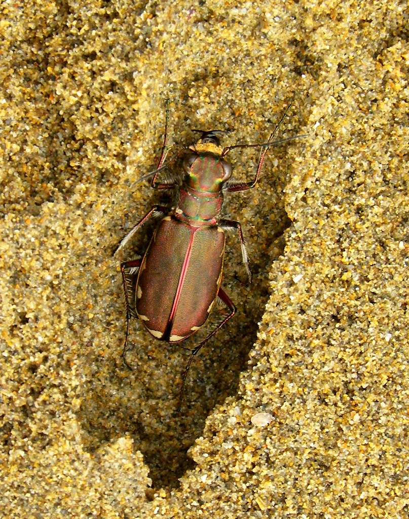 Lungo i lidi veneziani questo cicindelide è ancora molto diffuso, però è la prima volta che osservo e raccolgo un esemplare come quello fotografato; la particolarità che lo caratterizza consiste nelle macchie bianche regolarmente distribuite lungo il bordo esterno delle elitre.