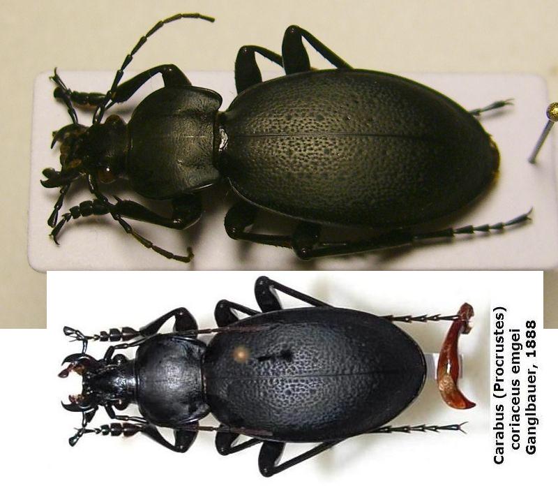 Ciao Marco, la variabilità individuale talvolta può essere notevole. Desidero ricordarti che C. coriaceus emgei Ganglbauer, 1888; C. coriaceus hopffgarteni Kraatz. 1877 e C. coriaceus cerisyi Dejean, 1826 sono razze piuttosto simili tra loro. In ogni caso tutti i tuoi dubbi devono essere fugati dal fatto che due sottospecie non possono essere conviventi per definizione. Un saluto, Ivan