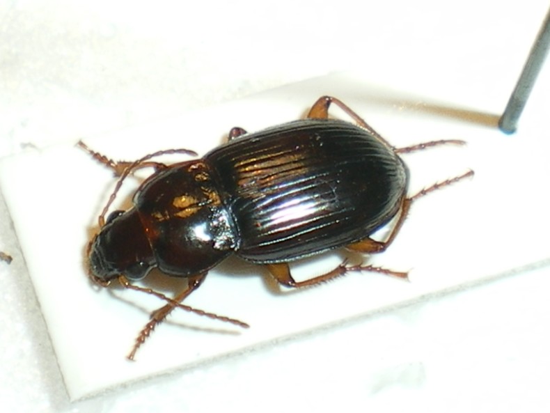 Giacomo, non è un' Harpalus, ma è un' Amara. Potrebbe essere una Celia montana, ma per essere sicuri al 100% (non si sa mai!!) bisognerebbe guardare vari caratteri ventralmente.