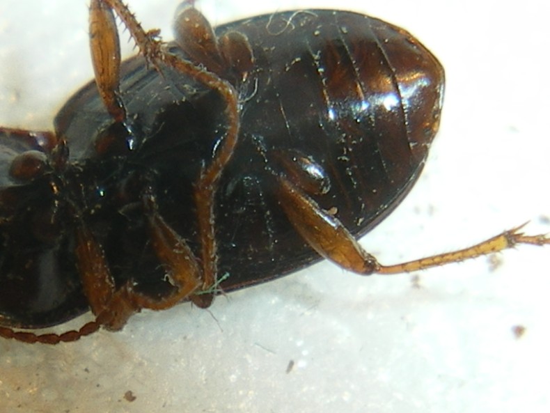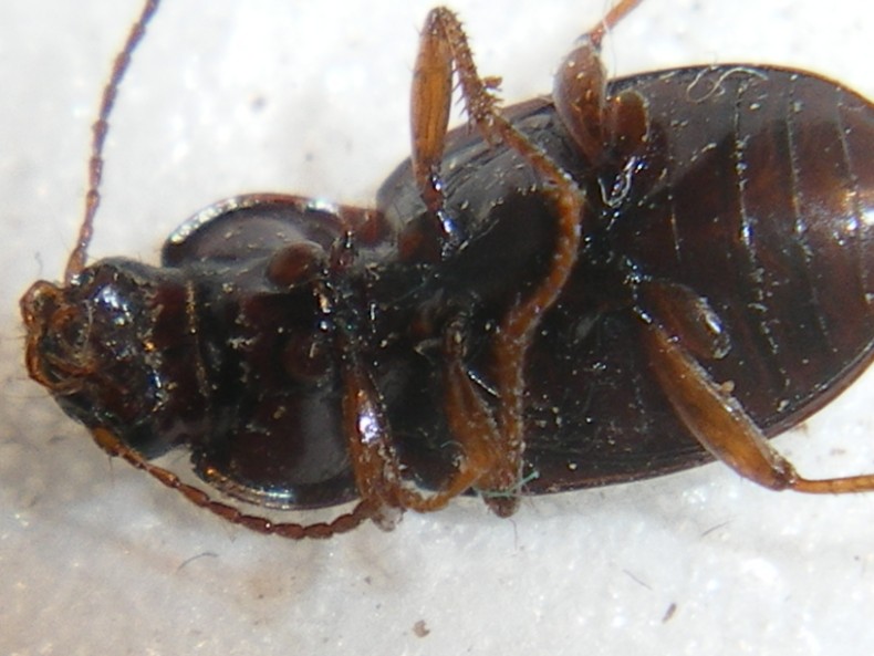 2) nei maschi, come questo, è anche più facile, perché i maschi degli Harpalus e degli Harpalini in generale hanno i tarsi mediani poco meno dilatati degli anteriori, quindi i mediani appaiono semplici solo se gli anteriori sono poco o nulla dilatati; invece quelli delle Amara, come è regola generale degli Pterostichini, hanno i tarsi anteriori quasi sempre vistosamente dilatati e quelli mediani senza eccezione semplici, come qui