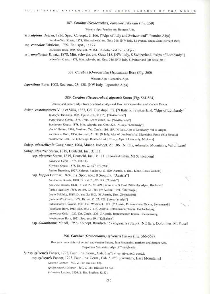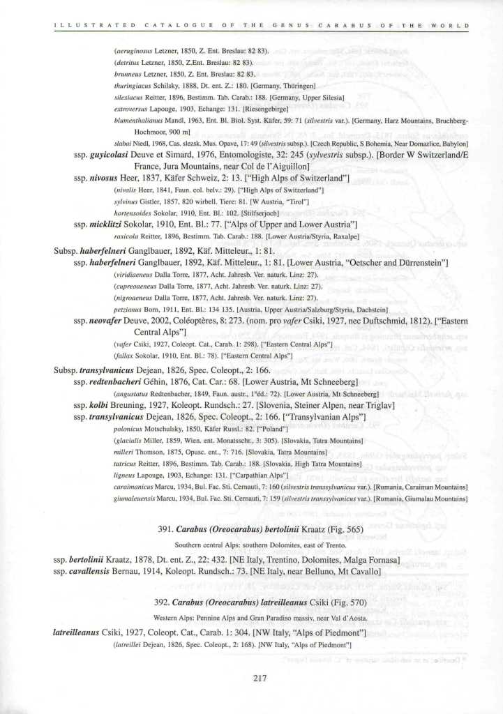 Per capire, la ssp nivosus su fauna europea è diventata: Carabus (Orinocarabus) sylvestris haberfelneri Ganglbauer 1891 presente solo in Germania e Austria mentre per Deuve (vedi sopra) è stato messo in sinonimia con la forma tipica (citando anche il passo dello Stelvio....)