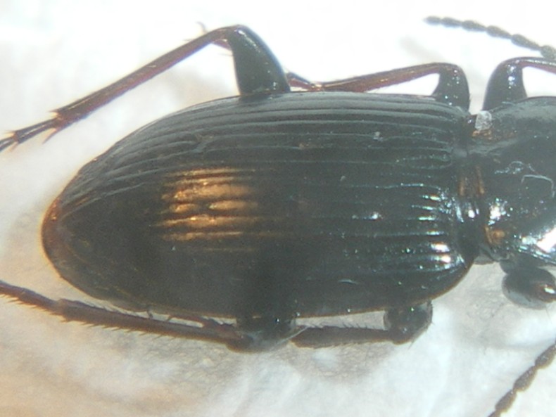 A prima vista sembrerebbe uno Pt. oblongopunctatus, ma mi sembra un po' troppo lucido. Le fossette basali del protorace dovrebbero essere punteggiate anche nell'intorno, mentre qui sembra tutto liscio. La terza interstria dovrebbe avere 5 o 6 punti, qui mi sembra di contarne 4. :?