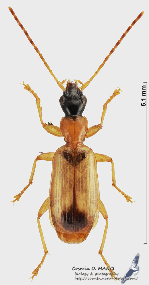 da Lindroth: - Temples hairy, elytral intervals with a single row of erect setae, claws with 3 teeth: atricapillus - Temples glabrous, only 3rd interval with 4 setiferous punctures, claws with single tooth: monostigma