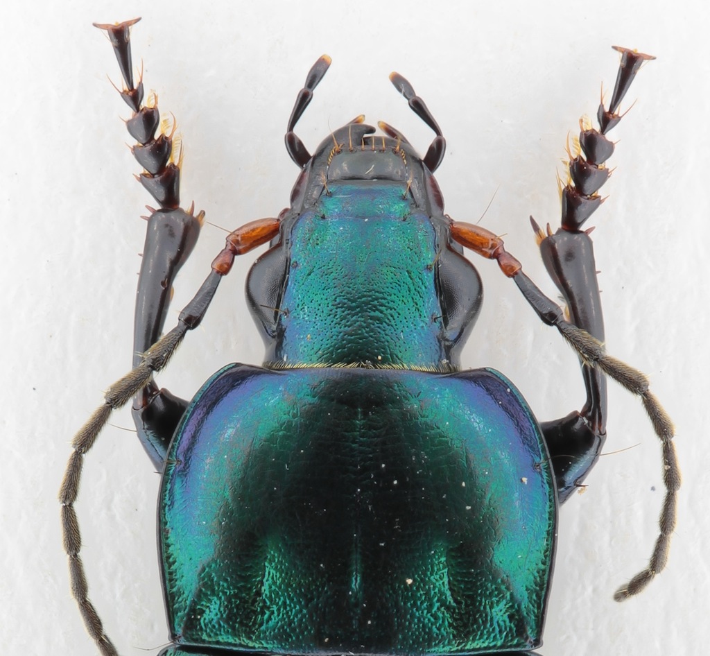 dato che la doccia laterale del pronoto sembra stretta per tutta la lunghezza, invece che allargata posteriormente, e questo, insieme allo splendido colore blu, anziché P. cupreus indicherebbe qualcosa di mooooolto meglio :mrgreen: