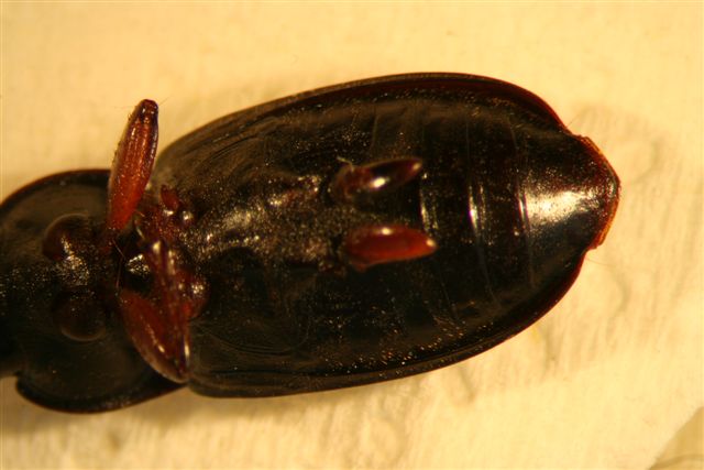 Carissimi Carabidologi, vi sottopongo un quesito veramente difficile. L'amico Venturelli mi ha inviato alcune foto di un insetto di cui non conosce neppure la provenienza. Per me è un Carabide, ma non riesco proprio a capirne altro. Vediamo se voi riuscite a caverne qualcosa. Ciao Roberto ![]() |