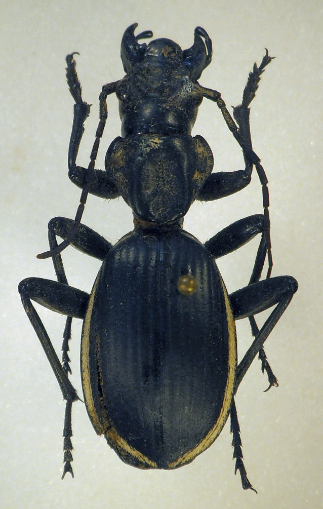 un solo ex maschio mi pare (protorace solo debolmente allungantesi verso le elitre), mm 38,5 escluso mandibole, stesso luogo dell'altra specie.