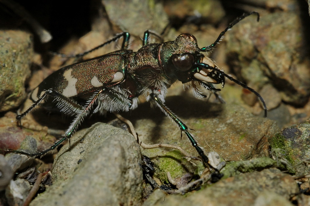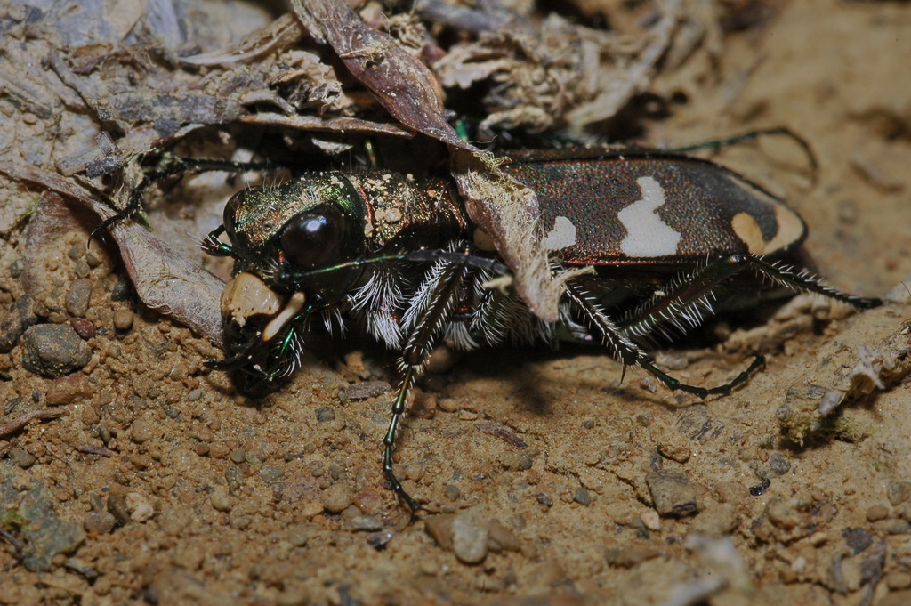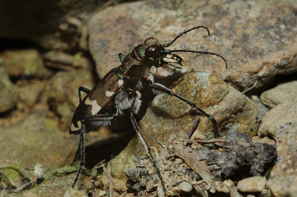 Ho trovato le Cicindela in una di queste radure dove l'erosione ha messo a nudo chiazze di terreno sassoso. Praticamente sotto ogni sasso meglio interrato se ne trovava una, assai restia a muoversi una volta messa allo scoperto.