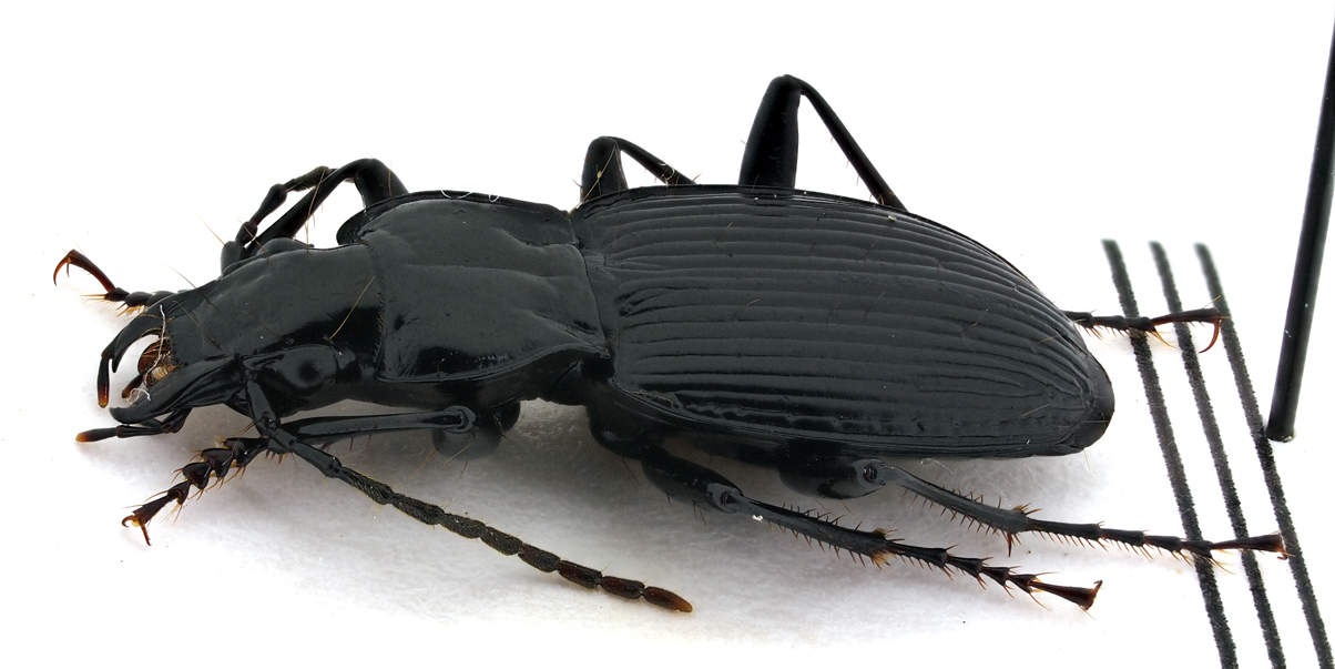 ciao michael se guardi questa discussione, anche se i micans appenninici sono generalmente più slanciati di quelli prealpini, puoi vedere un carattere che distingue le due specie, ossia la forma del pronoto, nell'impressicollis più fortemente ristretto alla base un carattere pratico per distinguere i Laemostenus (e generi vicini, come Sphodropsis) dalle specie di Pterostichus che possono a prima vista apparire simili, sono i punti lungo la 3a interstria elitrale, presenti in vario numero negli Pterostichus e costantemente del tutto assenti nei Laemostenus gli altri generi di pterostichini in cui mancano i punti sulla 3a interstria, come Abax, Percus, Molops etc., non comprendono alcuna specie che possa nemmeno lontanamente essere confusa con un Laemostenus |