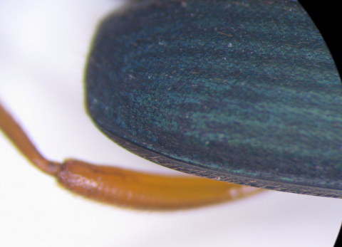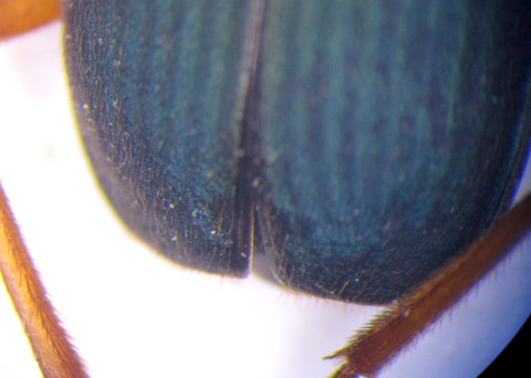 L'addome pare di vedere che sia nero, ma per identificarlo correttamente occorre vedere come sono le setole dell'orlo membranoso all'apice delle elitre.
