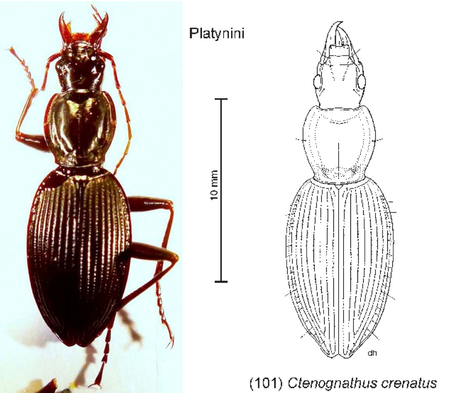 Chiedo scusa per l'assenza. In realtà credevo che fosse ormai accettata la determinazione proposta, su cui concordo assolutamente a livello di genere. Per quello che riguarda la specie, osservo che ci sono 19 specie descritte di Ctenognathus, credo tutte endemiche della Nuova Zelanda; le poche che possiedo (C. cardiophorus, C. adamsi e C. batesi) sono ben differenti, quindi è possibile che sia un genere che presenta specie ben distinte e quindi potrebbe davvero trattarsi di C. crenatus, ma manterrei il "cfr." per prudenza.