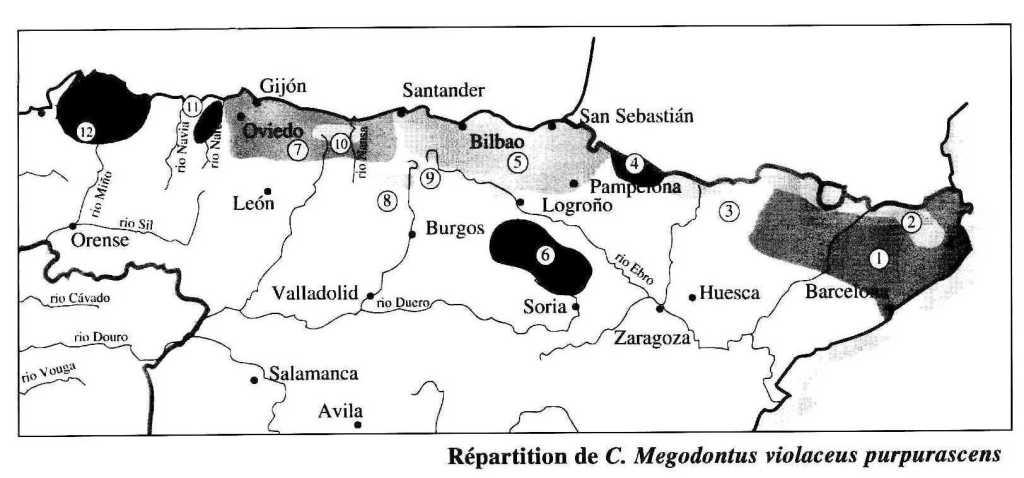 però questa aggiunge ulteriore confusione a quella che già c'è su purpurascens (a parte considerarla come buona specie, cosa che mi trova assolutamente d'accordo), vengono indicate località francesi per forme che altri autori citano per la Spagna.