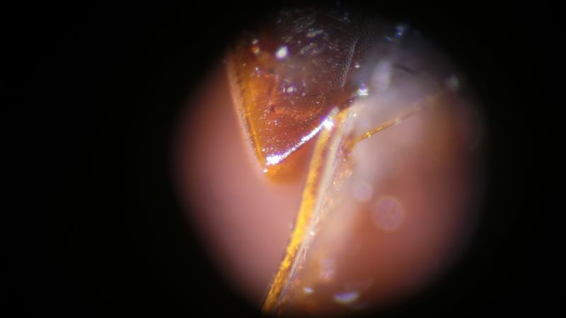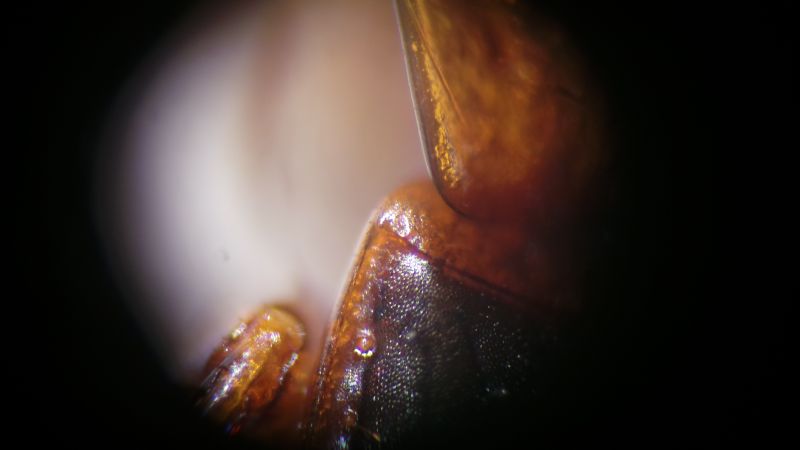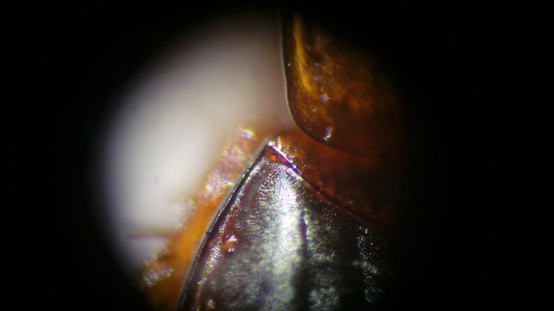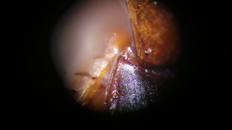Sì Andrea, il dentino famoso dovrebbe essere quello. Si vede bene la differenza con quello di riferimento che indichi. Se gli episterni del mesotorace sono rossicci, è un'ulteriore conferma.