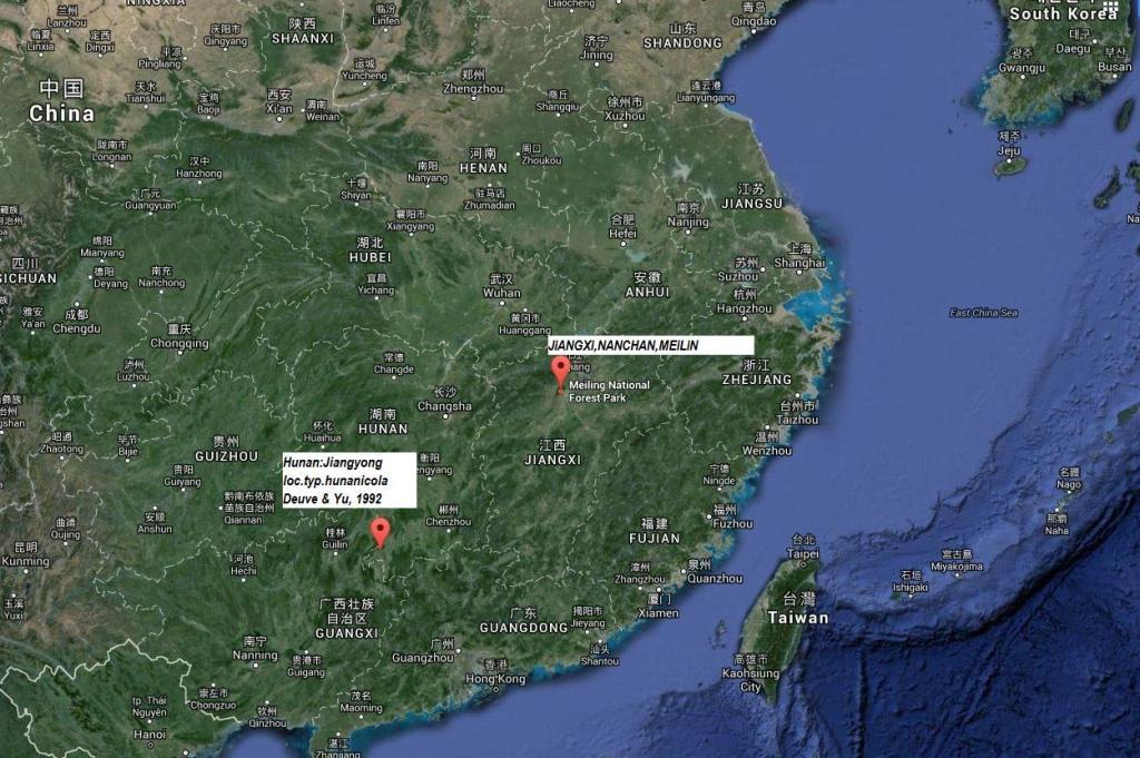 Subspecies hunanicola yangmingensis Deuve, 1995 S-Hunan:E of Yongzhou:Yangming Shan; NE-Guangxi:Guanyang:Qianjiadong