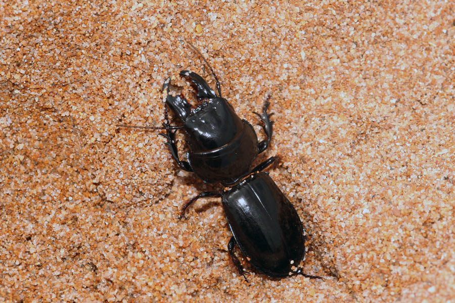 Inserisco queste immagini di Scarites buparius, bestiola che considero fra le più bella della fauna Siciliana. Mi ha sorpreso soprattutto averlo incontrato girovagante in pieno giorno, quando penssavo fosse specie esclusivamente notturna..... (Foce f. Modione - TP. 17 Aprile 2010 ) ![]() |