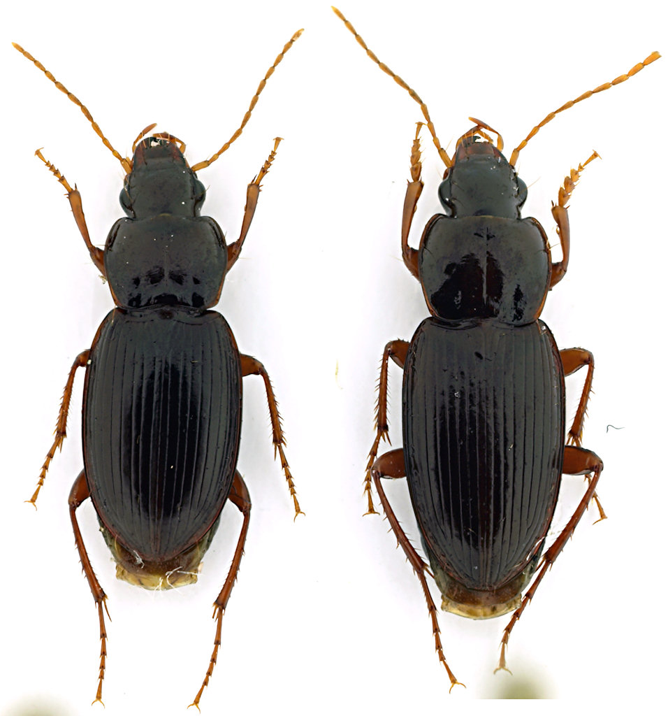 p.s. i Platyderus sono dorsalmente da bruno pece a rossiccio, evt con il pronoto leggermente schiarito, non nero fondo tipo Calathus fuscipes e non distintamente bicolori tipo C. melanocephalus; e le zampe sono rossicce più chiare del corpo, mai nere ma nemmeno giallognole