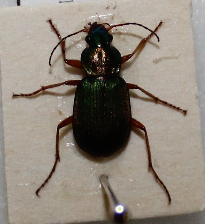 Catturato in un campo con piantine di grano appena spuntata dal terreno insieme a molti altri insetti, ma ho deciso di tenere solo questo perché mi sembrava il più bello. È lungo poco più di un centimetro (dalla punta della testa fino all'estremità dell'addome). Non so se si riuscirà a notare bene nelle foto, ma la testa è di colore verde brillante, il torace è verde con riflessi bronzei e le elitre sono verdi e opache, ma su di esse è presente una sorta di "velluto" dorato.
