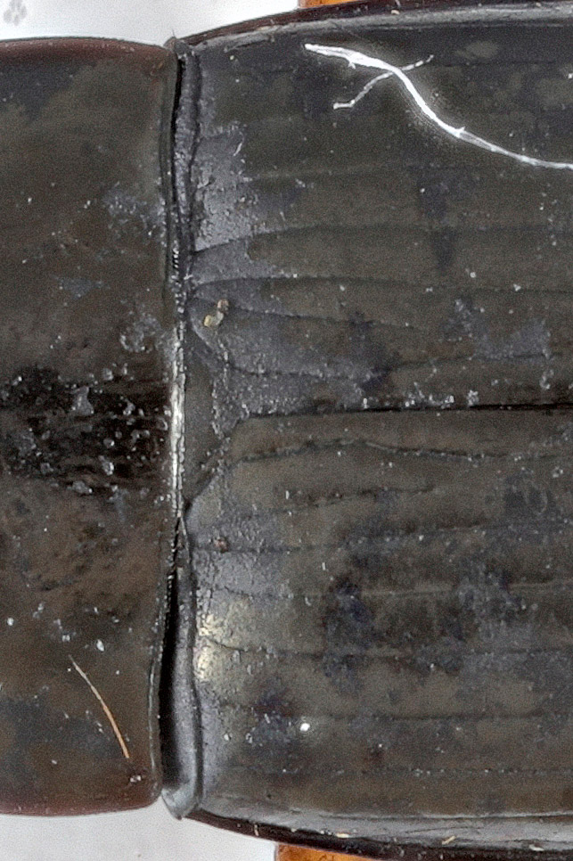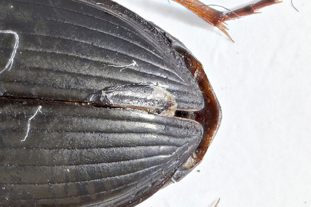 Se ha un poro con setola all'origine della stria scutellare (sembra, ma potrebbe essere dello sporco) è una Amara anthobia .